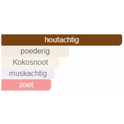 Hartnoten: Iris, sandelhout, kokos – romig, warm en licht poederig