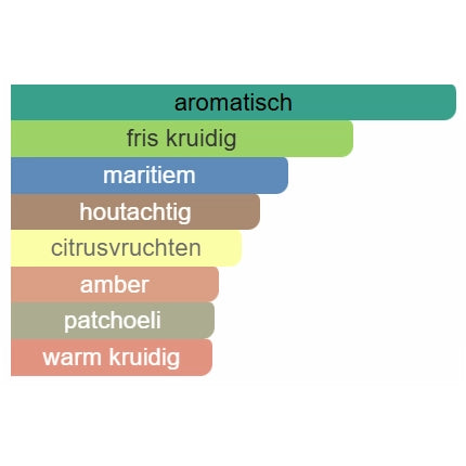 Hartnoten: Aromatische kruiden (zoals salie, lavendel), lichte florale accenten – energiek en elegant