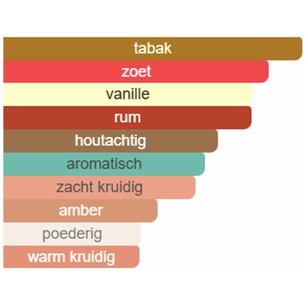 Basisnoten: Tabaksblad, vanille en styrax – warm, romig en zacht omhullend