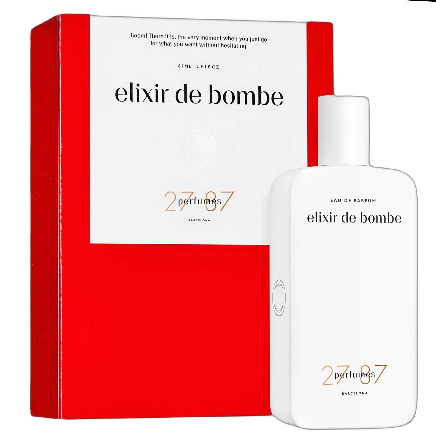 This fragrance from the innovative 27 87 Perfumes , a high-end niche house from Barcelona, is known for its modern twist on traditional perfumery . Seductive, unexpected and full of energy, Elixir de Bombe is an explosion of emotions on the skin.