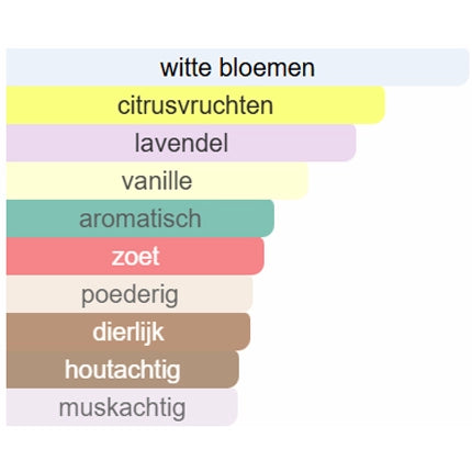 Ni trop fort, ni trop léger. Le parfum possède des notes chaudes de vanille, mais reste frais et floral en son cœur grâce à la lavande et aux agrumes.