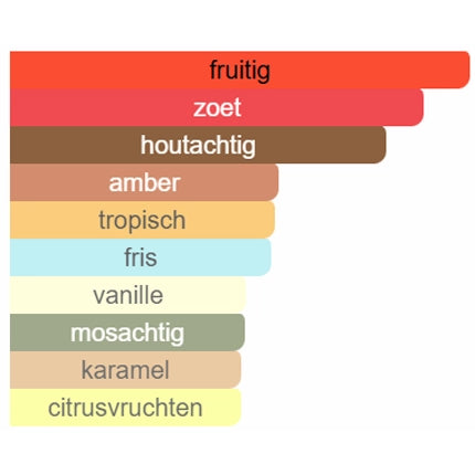 De geur opent met een sappige fruitigheid, transformeert naar een kruidige kern en eindigt met een diepe, comfortabele houtbasis. Stoer en tegelijkertijd toegankelijk.