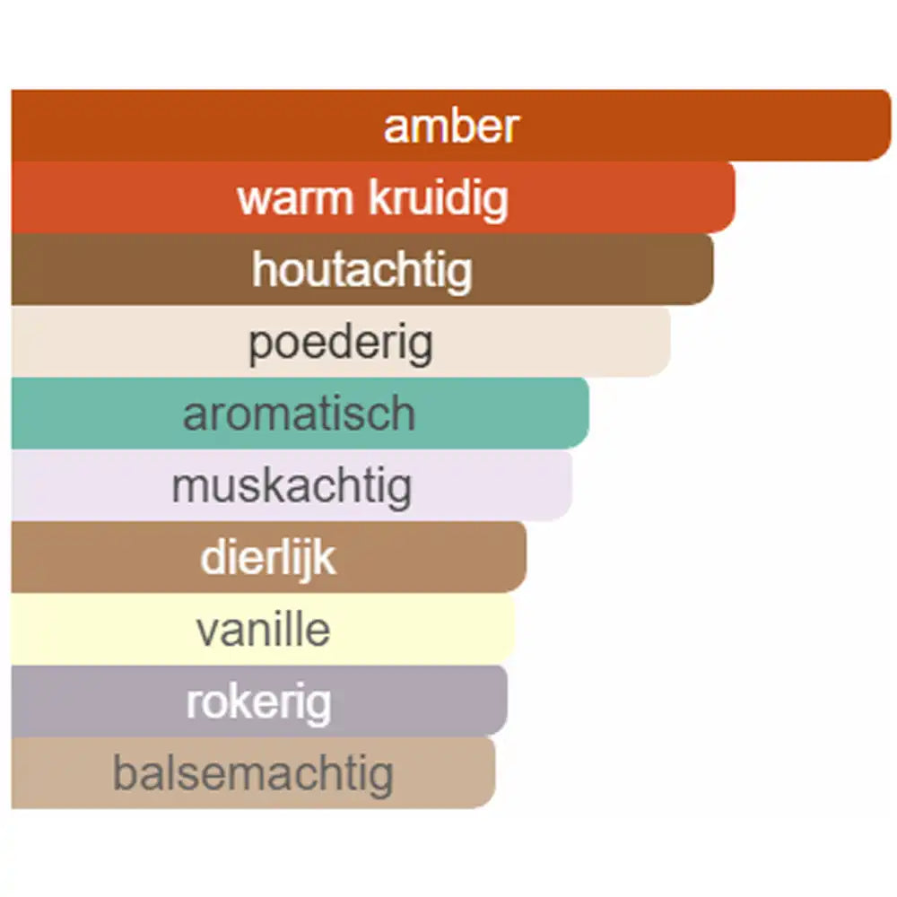 - BASISNOTEN: Amber, Wierool, Vanille, Civet, Muskus en Vetiver
