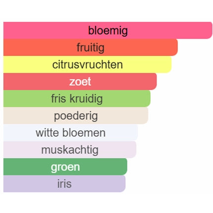 Nee. Het is eerder zacht, licht fruitig en bloemig. Zoet, maar op een frisse, elegante manier – nooit plakkerig.
