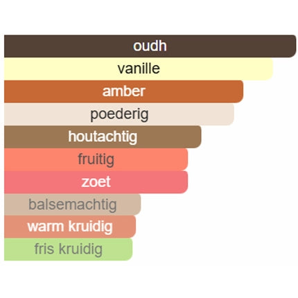De geur bevat zoete elementen (zoals vanille en fruit), maar wordt gebalanceerd door de rokerige hout‑ en oudbasis, waardoor hij elegant blijft in plaats van kinderlijk.