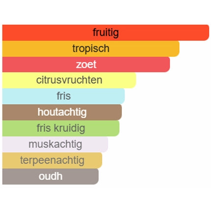 De geur opent met een uitgesproken fruitige explosie die je direct meeneemt naar zonovergoten tropen. Vervolgens ontvouwt hij zich naar een bloemig hart met verfijning en eindigt in een krachtige, houtige basis die urenlang blijft hangen — sterk, memorabel en onderscheidend.